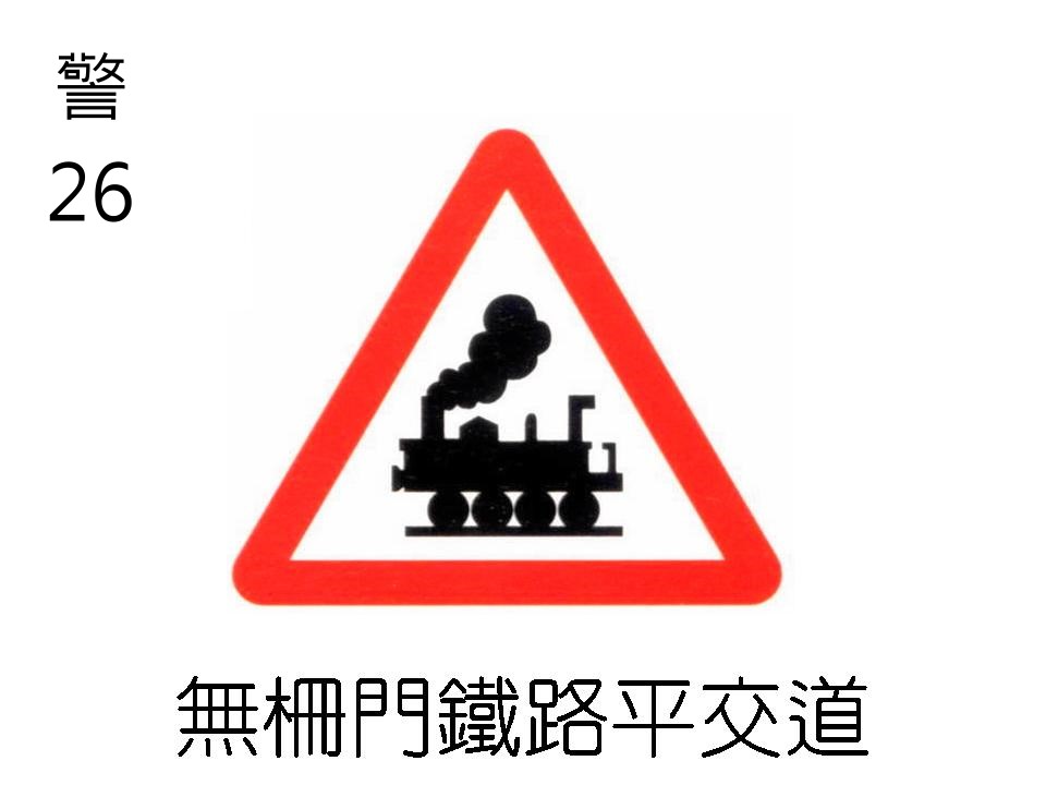 設於無柵門之鐵路平交道將近之處。 路面設有「近鐵路平交道」標線者,得僅設「警26」標誌一面、路面未設有「近鐵路平交道」標線者,應設三面,