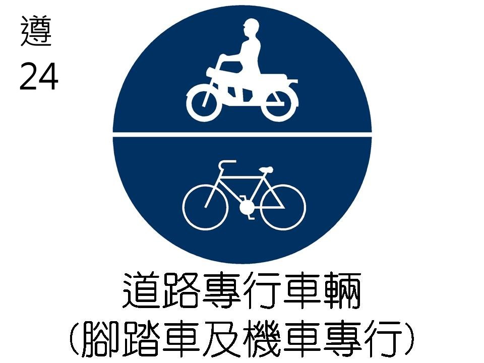 道路指定自行車及大型重型機車以外之機車專行用「遵24」。