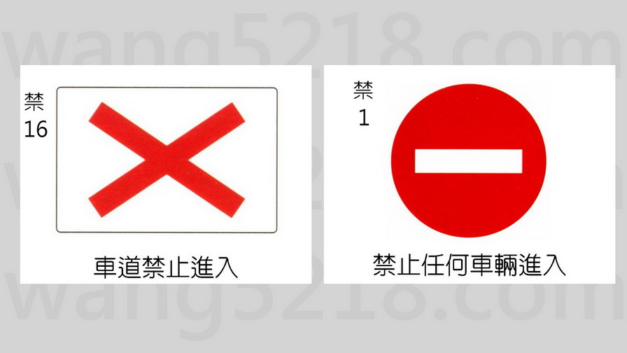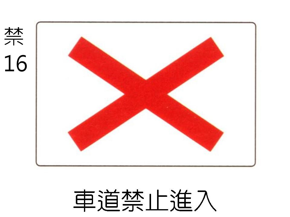 車道禁止進入標誌「禁16」,用以告示任何車輛不准進入該車道。懸掛於禁止車輛進入車道之正前上方。
