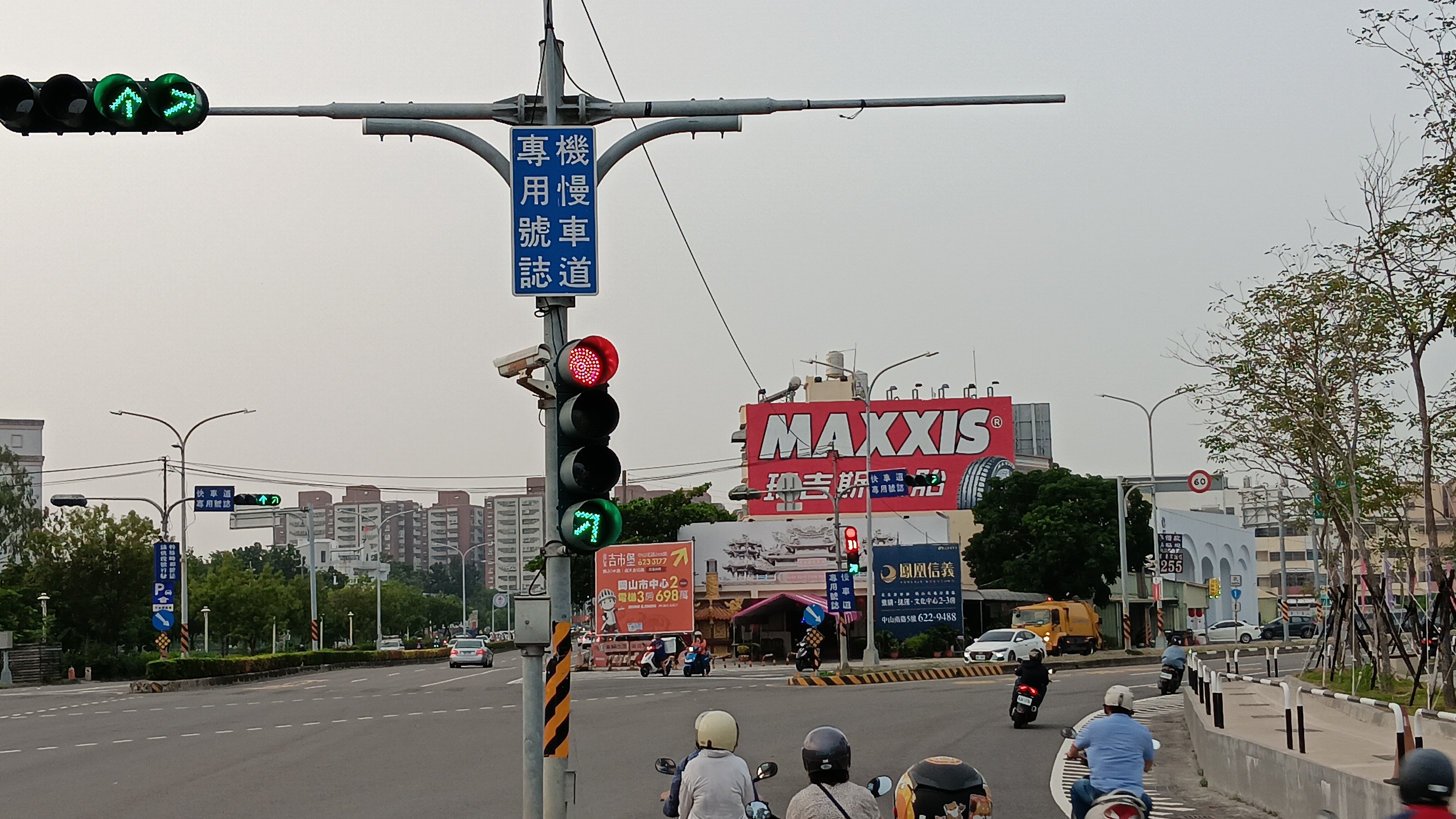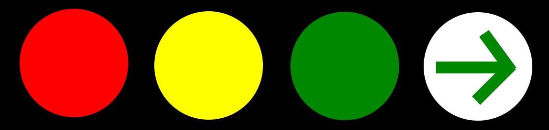號誌以紅、黃、綠三色燈號或輔以音響,指示車輛及行人停止、注意與行進,設於交岔路口或其他必要地點。