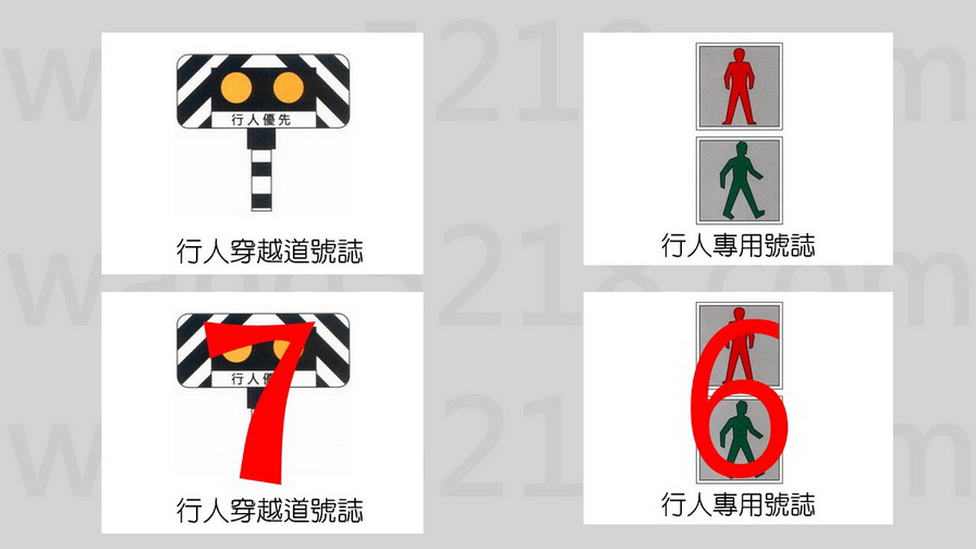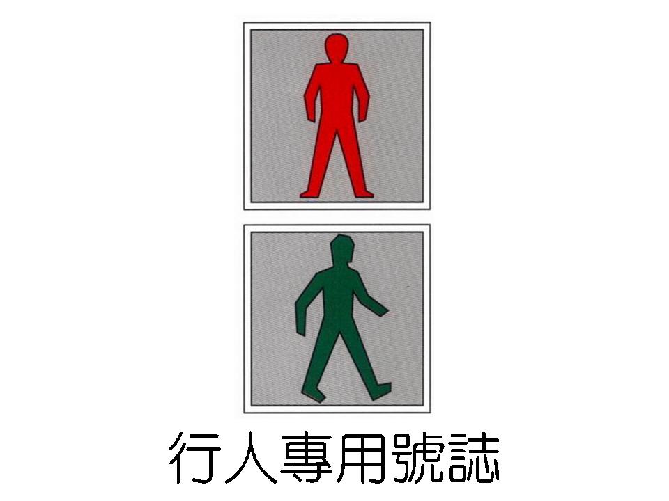 配合行車管制號誌使用,以附有「站立行人」及靜態或動態「行走行人」圖案之方形紅、綠兩色燈號,管制行人穿越街道之行止。