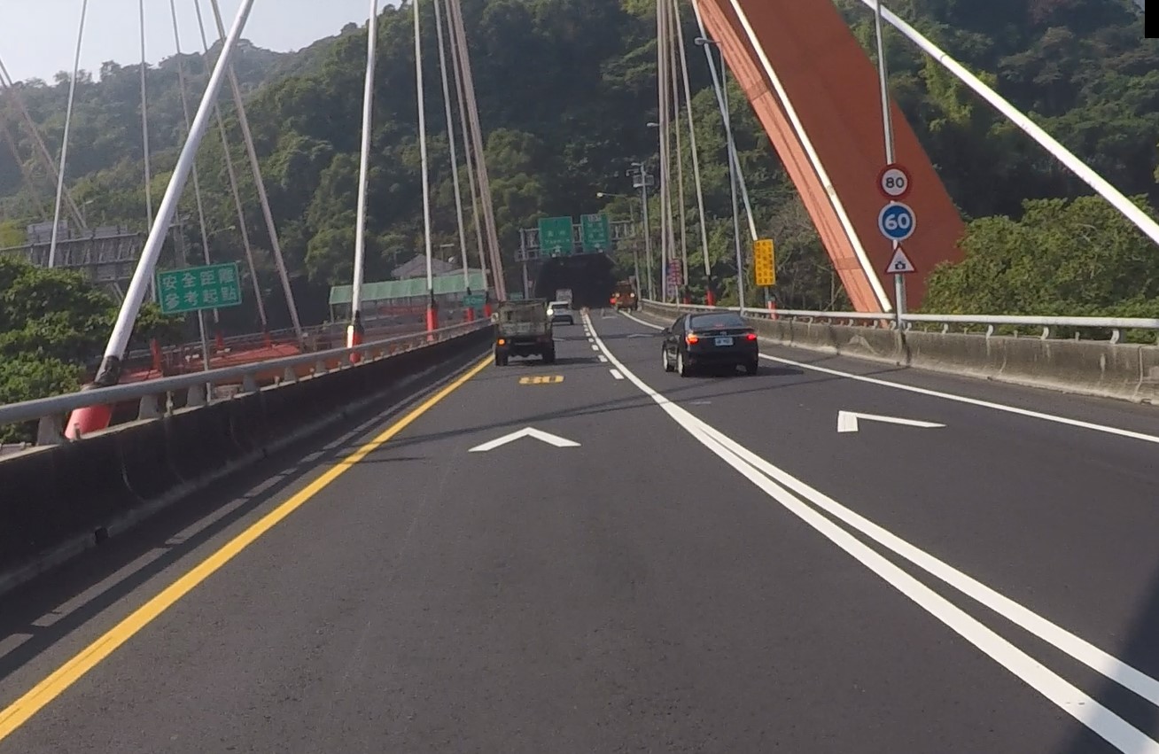 正常情況下,應可同時看到同車道上的2個楔形線,即是與前車保持適當的安全間距。